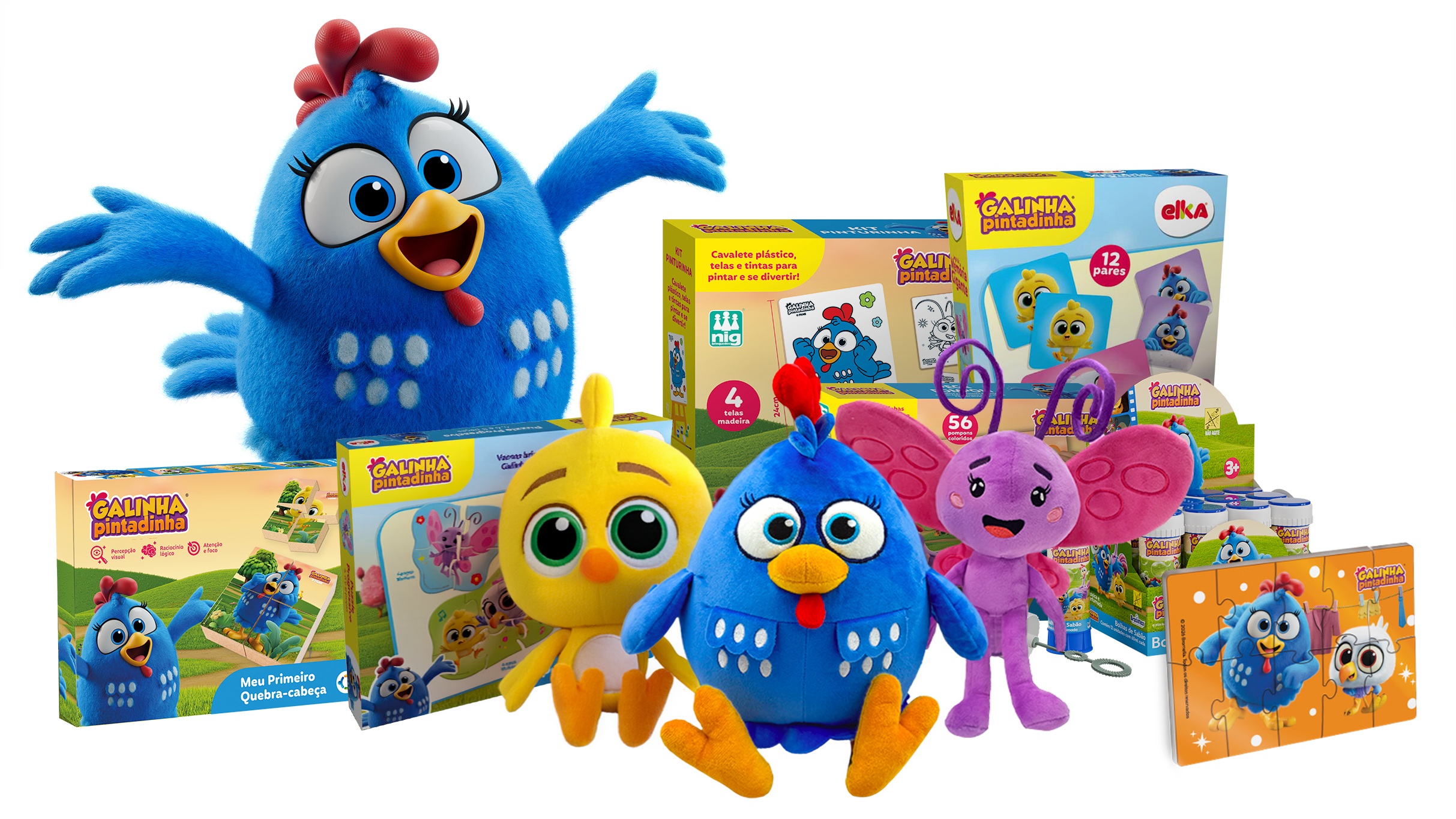 Os mais de 26 brinquedos exclusivos inspirados no filme foram desenvolvidos por licenciados que já atuam com a propriedade e agora traduzem o universo cinematográfico da Galinha Pintadinha em experiências tangíveis para o público infantil.